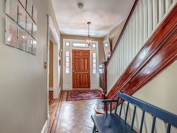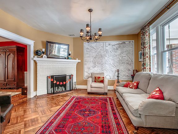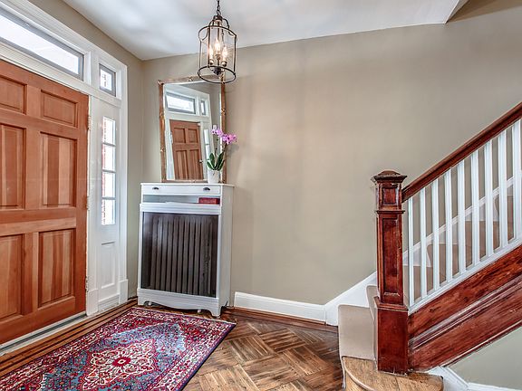 This extra wide 1920s townhouse has been lovingly renovated with beautiful designer touches. The main level opens to a wide entrance hall with a handsome original staircase, parquet floors with inlaid mahogany, and a paneled door with transom and side light. The living room boasts an original brick fireplace mantel and a large tri-part south facing window. The spacious dining room opens to a comfortable den and renovated kitchen with stainless steel appliances and tile floors. The second level provides four bedrooms including a generous master bedroom with separate dressing area. The newly renovated bathroom features lovely tile work and a large skylight. The lower level has been completely refinished to include a welcoming family room with exposed brick walls, an office area, a laundry room, and a beautiful tile bathroom. Enjoy evening sunsets and summer breezes from the charming swing on the spacious front porch, or dine al fresco on the brick patio. This home is conveniently located near the Metro, shops and restaurants, bus lines to downtown, and Rock Creek Park.