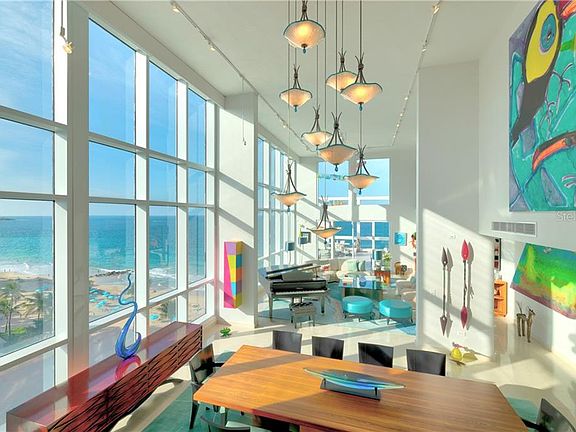 Rarely available, ready to immediately move in and to enjoy panoramic ocean views from this beautifully renovated, centrally air-conditioned three/four bedroom 4900 sq. ft duplex. Located atop one of CoBe's premier condominium buildings, this corner duplex features grand double height ceiling, 41' x19' living and dining space, 2/3 bedrooms on first level, with large outdoor entertaining space sitting directly on the ocean. Upper level features master suite, home office, large walk in closets and private terrace. Acquamarina condominium is a full-service building in the heart of CoBe with direct beach access. The building is among the most distinguished addresses on Ashford Avenue in close proximity to everything CoBe has to offer. The condominium boasts resort-like grounds complete with a beachfront swimming pool and gym. Walking distance to top restaurants, hotels, shopping and entertainment venues.