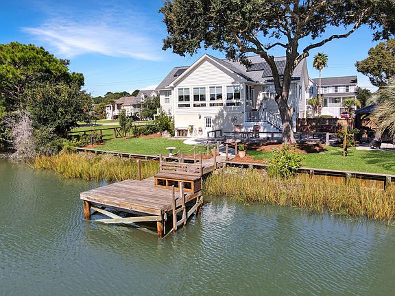 Location is key w this home only 3mi to Folly Beach, 2mi to Folly Beach Boat Landing & 8mi to DT CHS. This beautiful well-maintained home is situated on a SALTWATER LAKE & includes many upgrades, even a FULL-SIZE ELEVATOR. Enjoy fishing, kayaking/paddle boarding off your own dock. The front & back deck have been updated w worry free AZEK COMPOSITE DECKING & HARDWIRE lighting. Inside offers a 3-bedroom split plan with a GAS FP in the common area. The 23x12 sunroom overlooks the lake, where coffee & wildlife can be enjoyed. The kitchen has been updated w QUARTZ, Shelf Genie PULLOUTS & a TOUCH FAUCET. The 3 CAR GARAGE offers storage & a workshop along w a 30-amp 110-volt outlet for an RV; plenty of room for your toys. The driveway can easily fit a 40' RV.There's whole house GENERAC GENERATOR, & PD OFF SOLAR PANELS which will help keep energy cost down. The relaxed & minimal HOA owns the VACANT site next door & will never be built on. This home offers easy living w gorgeous sunset views. Come make it yours today!