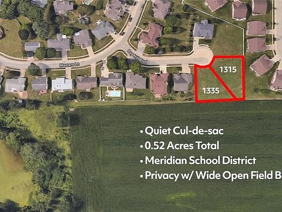 Gorgeous level lot on cul-de-sac near Southside Country Club is located in highly desired Meridian School District. This lot is adjacent to 1335 Bay Hill Blvd. which is also available for purchase at a discounted price of $38,000, for both lots (.52 acres total.)