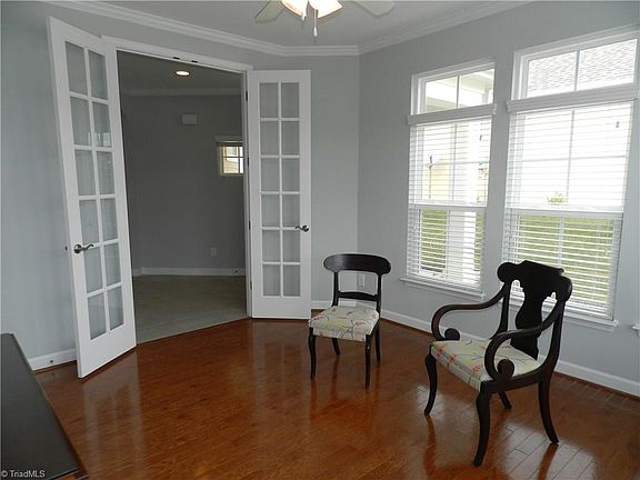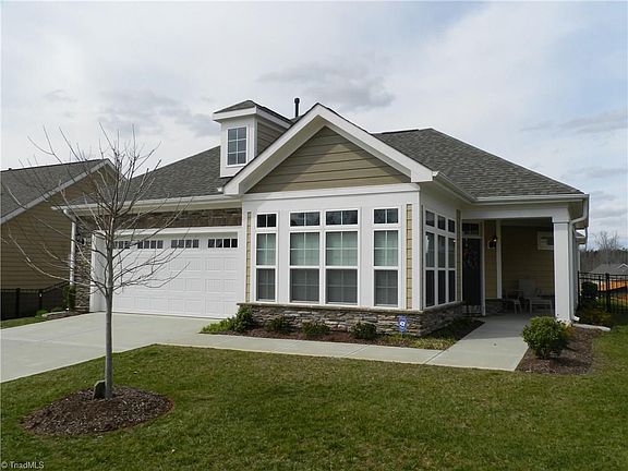 Better than new home offers beautiful open floor plan, 10 ft. tray ceilings in LR, DR, KIT and master bedroom, plus lots of upgrades. You'll love the dream kitchen with big island, granite counters, upgraded SS GE Profile appliances, hardwoods, gas log fireplace, 4 seasons room, huge master bath with zero entry shower, large laundry room, tons of storage, over 620 sq. ft. of covered porches and patio space looks into your fenced yard. Enjoy a low maintenance lifestyle close to great shopping and dining!