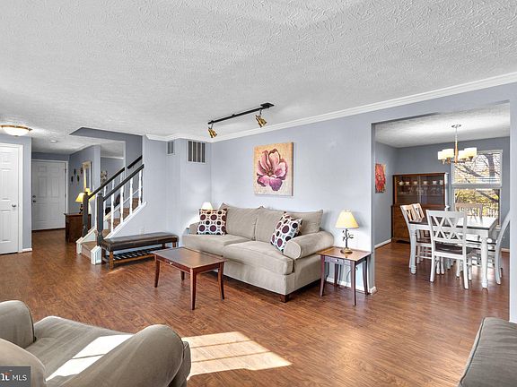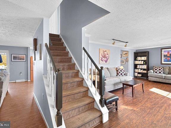 A stunning covered front porch opens to this over 2,600 sqft colonial ideally located in Hillcrest Orchards boasting a sun filled foyer opening to bright interiors featuring LVT flooring throughout the main level, a formal living room brightened by a trio window and capped by crown molding, and a formal dining with a chandelier. Upgraded chef's kitchen displays stylish quartz counters, custom herringbone tile backsplash, raised panel gray cabinetry, stainless and ebony appliances, and an island with a breakfast bar with a serene backyard view. Next to the kitchen is a delightful family room centered by a raised hearth brick surround fireplace and a walkout to an elevated deck. Owner's suite presents multiple closets including a walk-through closet and a private remodeled bath displaying a glass enclosed shower with a frameless bay slider. Downstairs you find a rec room with a wood stove set on a brick platform, a bath, an exercise room, plenty of storage, and a walk-up to the fenced yard with a yard deck. Let your new memories begin!