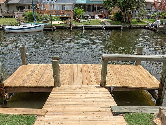 This is a 1 story duplex on the water with a dock. You have boating access to the Gulf, Inter Coastal, and all of the Bay.The house was completely rebuilt after the hurricane with only the cement walls remaining. All new appliances electrical wiring, plumbing and water lines, sheetrock, Roof and AC unit. The yard is totally enclosed with a new fence and it is a lovely home. What I will most is the views, peace and quiet and the house layout. I have 1 neighbor who owns the other side of the duplex who is retired and lives alone. Very quiet. The city has just enlarged and replaced most of the main roads making driving quite easy to get around.