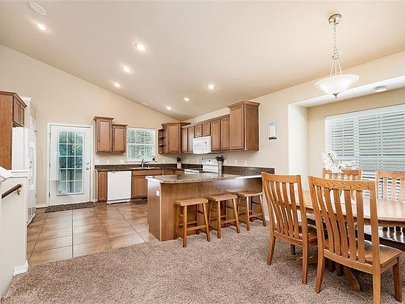 Enjoy summer on the front porch of this move in ready home!!! Vaulted ceilings, surround sound in living room & open concept. Tile flooring in the kitchen, lots of counter space, pantry, built-in desk area, and breakfast bar. 3 upper level bedrooms including the master suite which has a vaulted ceiling, double vanity and large shower. Great daylight lower level family room, large 4th bedroom & utility room. 2 car attached garage + RV Parking! Fully fenced yard, patio UGSP.