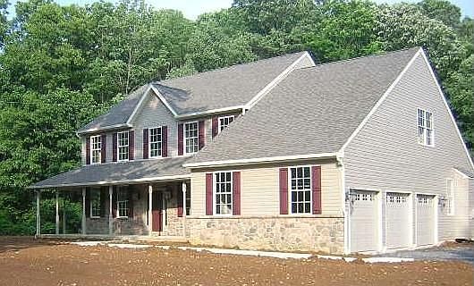 Pride of ownership abounds throughout this 4 bedroom, 2.5 bath Colonial with 9' ceilings, situated on almost two acres. The "rocking chair" wrap around front porch is an inviting place to relax and enjoy the quiet that the surroundings have to offer. The welcoming, open foyer with its sweeping staircase opens to the living room, presently a play area. There is a dining room with coffered ceiling. The family room features a vaulted ceiling, propane fireplace perfect for chilly winter nights and a wood stove capable of heating the whole house. The spacious kitchen has plenty of cabinets, new granite countertops, new high end stainless steal appliances, hardwood floors and walk-in pantry. The breakfast room opens to the paver deck. The first floor is completed by an office/study and a laundry room. The master suite has a coffered ceiling, large dressing room and spacious master bath with a glass enclosed shower, soaking tub and double vanity. Three additional bedrooms and a full bath complete the second level. There is a three car attached garage and a full 1600 sqft unfinished 9' ceiling basement. Within minutes of Routes 309 and 78, PA turnpike and state of the art Upper Perk YMCA facility.