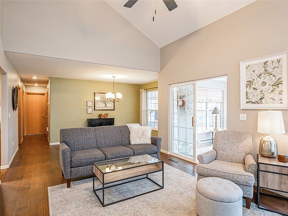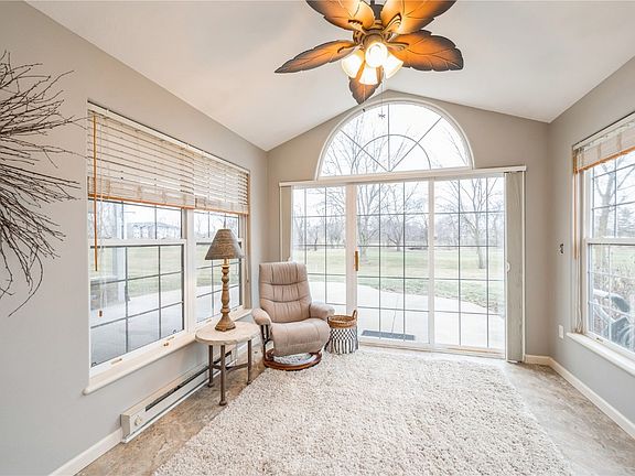 Beautiful, updated, zero entry condo is move in ready! Windows along the entire back of the condo welcome in amazing golf course and wooded area views! This well-designed condo has all the right spaces! Will your favorite space be the living room with vaulted ceilings and tall windows, the 4-seasons room with access to an oversized patio, the well-lit kitchen with stainless steel appliances and pantry in addition to the extensive cabinets, the spacious primary suite, or the heated 2 car garage with many built-ins for your hobbies?! You don’t have to choose if it’s yours! The golf course view, zero entry condos do not come up for sale often. You will need to act on this quickly to call this “Home”!