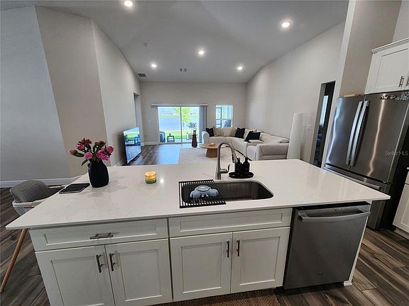 Welcome to your future home in Winter Haven's Harmony at Lake Eloise! The Dahlia floor plan is a fantastic one-story home that's perfect for families or anyone looking for a spacious, stylish place to call their own. This home has 4 bedrooms and 2 bathrooms, with luxury vinyl plank flooring in the main living areas, giving it a modern and durable feel. The open layout makes the living, dining, and kitchen areas flow seamlessly together great for hanging out or entertaining. The kitchen is a chef's dream with quartz countertops, 42" upper cabinets, and stainless-steel appliances. It opens up to a covered lanai, so you can enjoy outdoor living and Florida's sunshine whenever you want. The owner's suite is a private retreat with a big walk-in closet and a luxurious walk-in shower with floor-to-ceiling tile. There's also a versatile loft space perfect for a home office, playroom, or extra hangout spot. The front of the house has a flexible den area, and the oversized laundry room adds plenty of convenience. Plus, the home features a smart thermostat with voice control, eye-catching elevation, lush landscaping, and a spacious 3-car tandem garage for all your storage needs. Living here puts you close to tons of fun things like LEGOLAND Florida, Winter Haven's Chain of Lakes for water sports, fishing, and paddleboarding, plus cool local restaurants in the historic downtown district. If you're looking for a home that's stylish, functional, and in a great location, the Dahlia might be just what you need. Reach out today to learn more and see how this home could be yours!