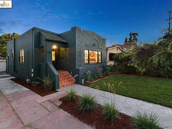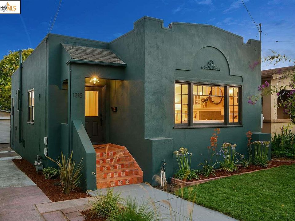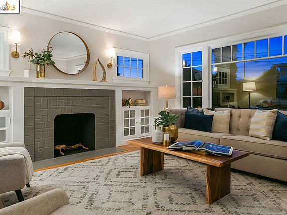 This 1924 California bungalow is lovely from every angle. Its handsome navy exterior sets off the Craftsman-era architectural details, the Mediterranean tiles on the front steps, and the clean landscaping of the front yard. The living room has a tiled fireplace with built-in shelves on either side. The three windows bring in lots of light, and the oak floors and arched entry are elegant period details. The dining room has a large window for afternoon sun, and a traditional Craftsman built-in sideboard of cabinets and drawers. The kitchen is warm and efficient, with lots of light. As a fabulous bonus, there is a flexible guest/office/laundry room off the kitchen. Down the hall, two bedrooms, both with great light and nice-sized closets, are on either side of a vintage-style bathroom, and a linen closet in the hall offers extra storage. Outside, the tree-filled, private backyard has ample room for play and a large patio which is perfect for entertaining and dining alfresco.