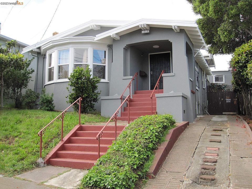 The front house has three bedrooms one full bath. Fireplace in living room. Sunny dining room. Hardwood floor. Dual Pane windows. Extra storage in the lower level. Central heat. Addition of room at the back of front house with bathroom. Parking in driveway. Walking distance to schools and easy access to Freeway 580.