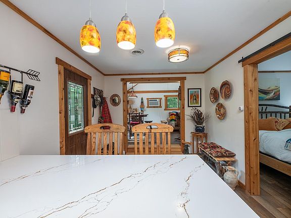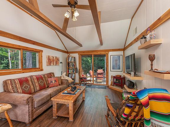 THE SPACIOUS SMALL HOME! Enjoy easy living in this roomy small home. The open flowing design sports a bright kitchen with white lower cabinets, quartz countertops, open shelves, stainless appliances, and fabulous pantry. The living room boasts a vaulted beamed ceiling and large windows with scenic views and natural lighting. With one bedroom and one bath, the home is perfect for a single person or couple. The hilltop setting provides expansive views and a seasonal lake view. A blacktop drive, low maintenance 1.6 acre setting, heated 1-car garage, and UTV drive to your backdoor completes this fine Northwoods package!