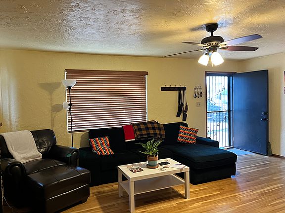 AVAILABLE JUNE 1ST. One-year lease. This centrally located home, with 2BRs/1BA, & 1200 SF has wood floors throughout, except for the kitchen area, which is tile. Central Air conditioning/Heating; Large Bedrooms, on-site washer/dryer; Ceiling Fans; Security Bars for windows and doors; 2 Miles to U of A via the Mountain Ave. Bike Path. Cat tran only steps away from the front door; 2 blocks to Campbell Ave. for shopping and restaurants; Large, fenced back yard; dog friendly upon approval and pet deposit. Utilities (water, gas, electric, internet) are NOT included. Free street/driveway parking. Tenant pays for: utilities (gas, water, electric, & internet);