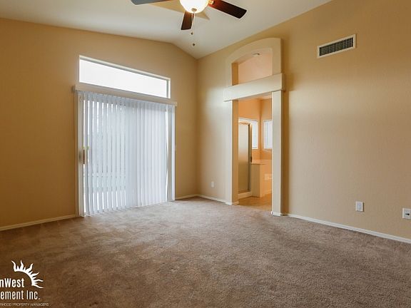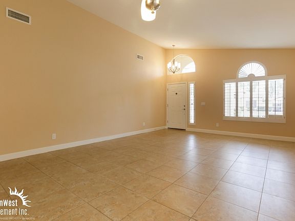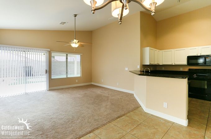 Beautiful 3 bedroom 2 bathroom home with extensive upgrades throughout! Property is ready for immediate move in boasting a spacious open floor plan, ceramic tile flooring, high vaulted ceilings, large windows and fresh carpeting throughout. Kitchen has dark granite counter tops, full appliance package and breakfast bar which opens to the large living room area. Full sized front loading washer and dryer included! Bedrooms offer plenty of closet space, high ceilings and ceiling fans. All bathrooms have matching dark granite counter tops. Huge master suite with Arcadia doors leading to the back yard, walk-in closet, large soaking tub and walk in shower! Backyard has covered patio, putting green turf, BBQ area and plenty of room to entertain! Just a moments walk to local schools and parks! Home is centrally located with quick access to loop 101, 51 and I-17 fwys.No Pets Please.