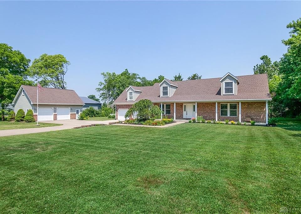 Country living in Tipp City on 1.76 acres! Rare find!!! This Immaculate custom built 4 bedroom and 3 full bath home is filled with warmth and charm. From the moment you walk into the large open foyer you'll be at home. Spacious kitchen with Stainless steel appliances. Large living room. Family room with gas fireplace, cathedral ceiling with beautiful view of 2 tier deck and private back yard. Master bedroom on 1st floor with nice full bath, walk in shower and large walk in closet. Additional guest bedroom on 1st floor with full bath. 2 large bedrooms upstairs with additional storage room that could be a finished measuring 21x8. 2 car garage attached to house is 576 sq. ft. and a detached 2 1/2 car garage with 782 sq. ft. and stairs to storage room above that could be finished measuring 31 x 10. Don't miss this exceptional home!!!