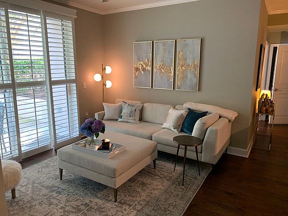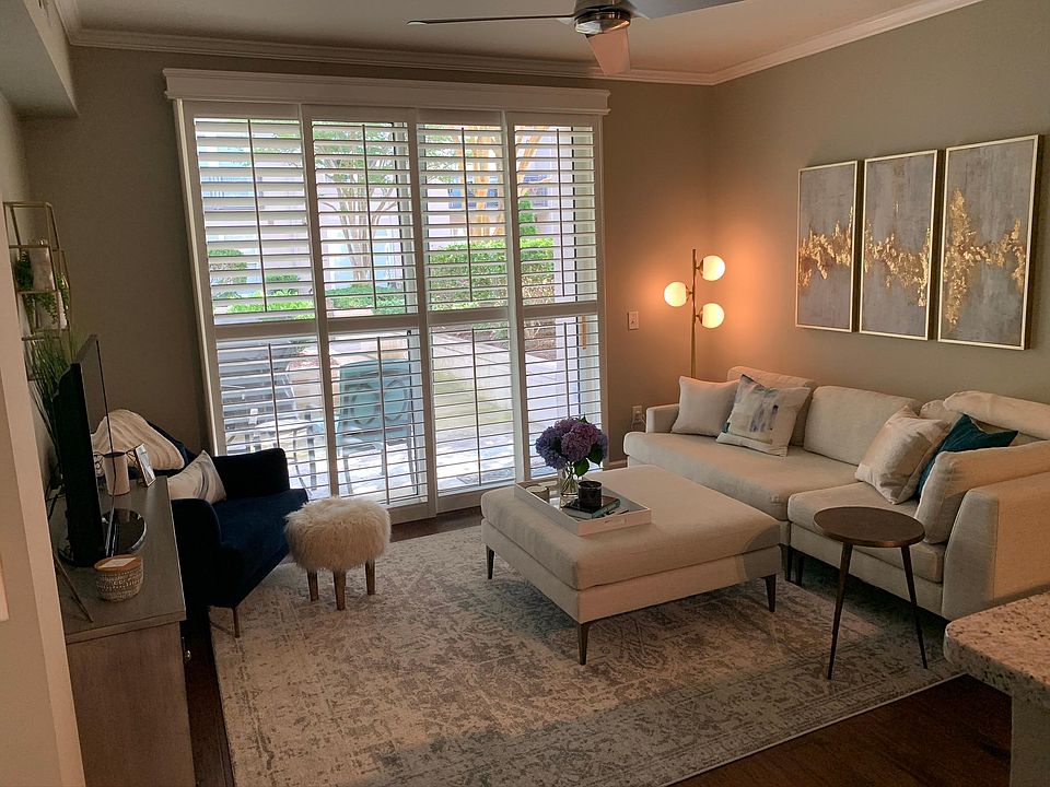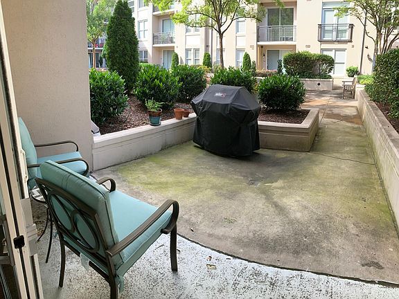 Rare, must see garden patio condo! Offers condo living with town-home style access to outdoors. One of select few units with its own patio on internal courtyard level. Large entertainment patio for grilling, that opens directly to the common area courtyard with water features and decorative planters. Upgraded master bathroom with modern rectangular ceramic tile flooring. Upgraded kitchen with farm style sink, stainless steel appliances & granite countertops. Plantation style rolling shutters allows optimal privacy in the living room, while displaying premium elegance. Recent hardwood floors added and fresh paint throughout. Full size washer/dryer included. Community has a secure parking and secure entrance building. Fitness center, roof top terrace and it is within walking distance to multiple grocery store, shops, restaurants and both Latta/Freedom Park. Minutes from Uptown. Trash, Sewer, Parking all included. Power and Internet are only tenant responsibility.