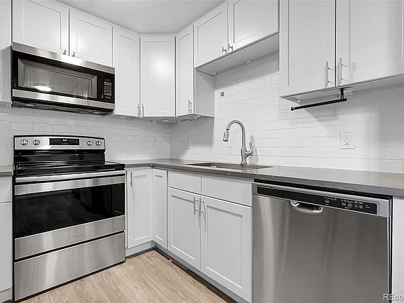 Welcome to this beautifully renovated townhouse-style condominium located in the heart of Lakewood! This 2-bedroom, 2-bathroom home offers 1,186 sq ft of modern living space, combining comfort and style. Enjoy the updated, fresh kitchen, with newer cabinetry, stainless steel appliances, quartz countertops and subway tile. The spacious living room is bathed in natural light, providing a warm and inviting atmosphere. The thoughtful split-bedroom floor plan offers privacy, making it perfect for roommates, families, or those needing a home office. Each bedroom offers closet organizers to allow for efficient storage. The condo opens to a private fenced courtyard, ideal for indoor-outdoor living and entertaining. Benefit from in-unit washer and dryer located in the basement that also offers loads of storage and space for crafting! Estes Square Condominiums are known for their well-maintained grounds and community pride. The HOA covers gas, heat, sewer, snow removal, trash, water, and more, ensuring a hassle-free living experience. Situated just one block from the Garrison light rail station, commuting to downtown Denver is a breeze. Additionally, the vibrant Belmar shopping district, featuring over 80 stores including Target and Century Theatres, is nearby, offering a variety of shopping and dining options. Don't miss the opportunity to own this meticulously updated condo in a prime location. Schedule a showing today!