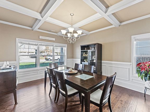 Discover this delightful 5-bedroom, 3-bathroom home that elegantly combines modern sophistication with comfort. The entrance leads into a formal dining room with stylish coffered ceilings. The heart of this home is a modern kitchen featuring granite countertops, ample cabinetry, and stainless steel appliances, including a gas stove and a butler's pantry. Adjacent to the kitchen, enjoy a cozy breakfast area that opens to a family room with built-in cabinets and a gas fireplace. The main level also offers a guest bedroom and full bath. Upstairs, the primary suite features a trey ceiling, walk-in closet, and ensuite bath, alongside three additional bedrooms and a versatile loft space. Step outside to a private outdoor area with a screened porch, patio, fire pit, and a community pool for added enjoyment. Located in a serene neighborhood near the highway, this home perfectly blends upscale living while being ideally situated for convenience and the area's future growth.
