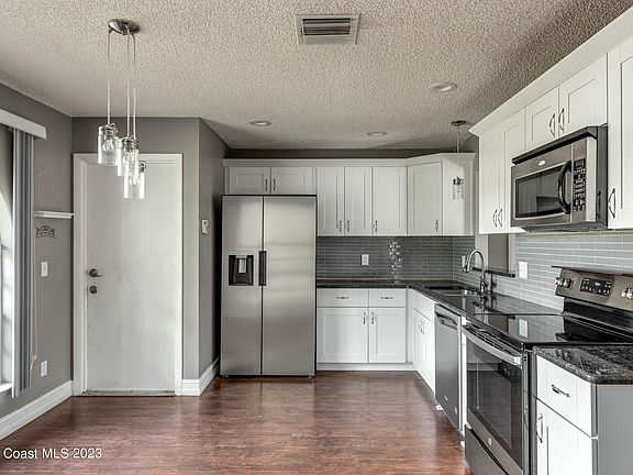 Beautifully updated corner lot NW Palm Bay home with pride of ownership in every inch! This home boasts vaulted ceilings, split floor plan, stainless steel appliances, and a BRAND NEW ROOF 2022 with 10 KWT SOLAR PANEL SYSTEM. The electric bill is the minimum $30/monthly required by our electric company. More upgrades include 2023 water heater, laminate flooring throughout, soft close drawers, and granite countertops!