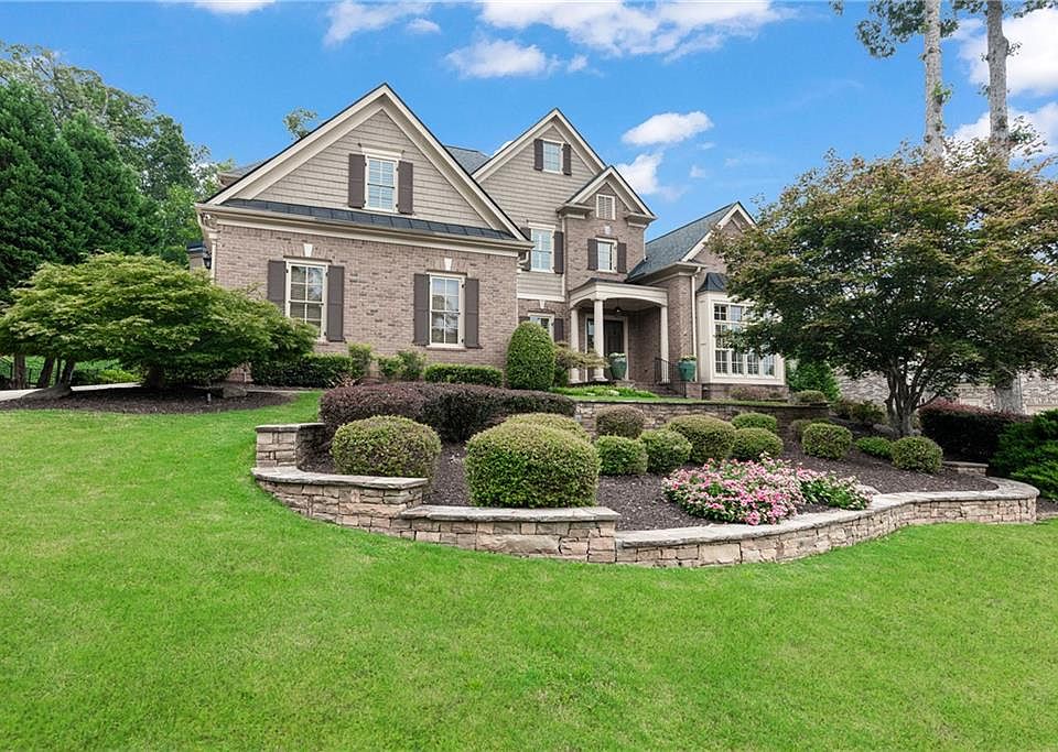 This stunning, light-filled home is perfect for everyday living and entertaining, boasting high-end finishes and upgrades throughout. The elegant foyer opens to a two-story great room with a wall of windows, coffered ceiling, and grand fireplace. The formal dining room and office feature beautiful millwork. The bright, open floor plan includes an updated white kitchen with quartz countertops, refinished cabinets, and stainless steel appliances, connecting to a cozy keeping room with a stone fireplace and breakfast area. The main-level owner's suite offers a sitting area, fireplace, luxurious bath, and spacious walk-in closet. Off the master, a screened porch, deck ,and walk-out backyard provide outdoor bliss. The beautifully landscaped yard features a pergola, fire pit area, and two putting greens. Upstairs, find three generously sized bedrooms with en suite baths. The renovated terrace level is an entertainer's dream, featuring exposed brick walls, a media room, game room, kitchenette, workout room plus a second master suite. This suite is spacious and upgraded with luxury features from the bathroom to the custom closet and more. Additional perks include a three-car garage, proximity to Whitfield Academy, hiking trails, The Battery, and major highways.