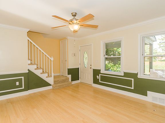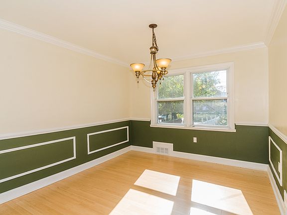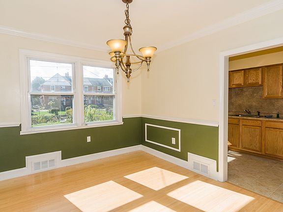 VALUE PORCH FRONT ROWHOME WITH SPACIOUS ROOM SIZES & LARGE BACKYARD! Living room & separate dining room w/ bamboo floors, crown molding & wainscoting, kitchen w/ laminate back splash, upper level w/ 3 spacious bedrooms & 1 full bath w/ granite topped vanity, full unfinished basement w/ laundry & half bath - finish for more living space, & large backyard!