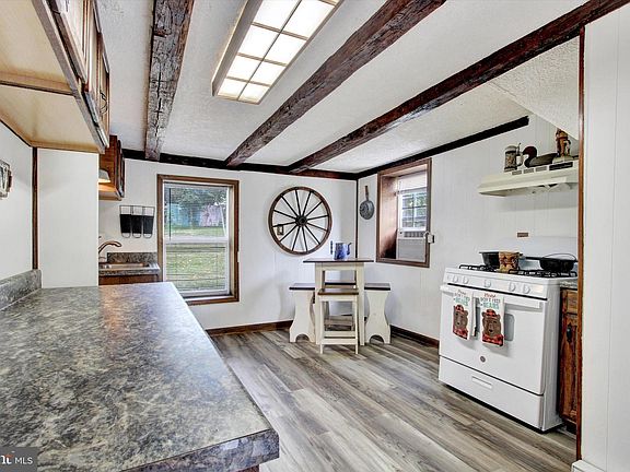 So much charm in this private remodeled log construction cabin on 4.5 acres in Gettysburg School District, just 9 minutes from historic downtown Gettysburg Square. Lots of exposed log walls in this 3 bedroom, 1 bath home, but more logs could still be uncovered under existing panelling. Very recent remodeling includes new LVP flooring, windows, vinyl siding, metal roof, gutters, cabinets, countertops, paint and metal ceilings on 2nd floor for added rustic character. 200 AMP electric with circuit breakers, along with copper and PVC plumbing. Electric baseboard heat and window a/c units. There are 3 wells on this property because there used to be 2 trailers in addition to this cabin. Septic is a holding tank. Deck needs some repairs. You're going to love the seclusion and wildlife! Come check it out!