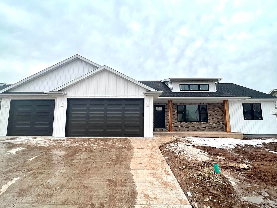 Beautiful custom built home. Tall ceilings, Painted trim, doors and cabinets. Dormer window in great room. Great location between Appleton and GB. Vertical siding, brick and cedar posts to accent the front of the home.