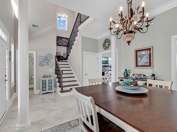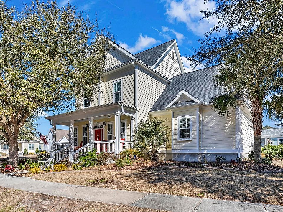 Charleston style meets Low Country in this stunning quality custom home in highly desirable Charleston Landing. This classic versatile floor plan is intriguing all the way around and features volume 10' ceilings with deep crown mouldings and tall baseboards on both levels, recessed lighting, great storage and plant ledges. The many windows throughout affording immense natural light. A wide entry leads to an inviting formal dining room with decorative pillars. The quartz kitchen opens to all public areas and is equipped with abundant 42" soft close cabinetry and counter space, tiled back splash as well as a morning room and breakfast bar. An adjacent laundry room includes a large pantry. Not to be missed is the show stopping dramatic 2- story great room which showcases impressive built-ins and custom designed gas fireplace. The spacious owner's suite offers a large walk in closet and opens to a well planned bath with walk-in tiled shower and raised quart topped double sinks. The second level offers 2 generously sized bedrooms, a full bath as well as an oversized bonus room with a closet which could also serve as an additional bedroom. This home is also upgraded with rectangular tile flooring in all public areas and double barn door style doors in the owner suite (leading to the walk in-closet and bathroom). Let's talk about the amazing outdoor living. There are 2 covered porches with ceiling fans in both the front and rear of the home as well as a paver rear patio for quiet enjoyment and entertaining. A spacious garage includes an epoxied floor and overhead storage. The rear alleyway/driveway is also conveniently accessible from Wading Heron Rd. Situated on a well landscaped homesite with in ground irrigation, outdoor shower and rear metal fence. Community amenities include sidewalks, a marsh front pool with cabana, boat storage, playground, basketball court as well as lakefront gazebos. Convenient to all the attractions of North Myrtle Beach including beaches, schools, golf, shopping, entertainment as well as the Robert Edge connector and Hwy 31. Don't miss this one!