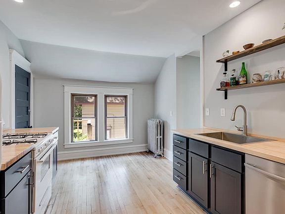 Beautifully remodeled upper unit apartment in the Northeast Arts District - right in the heart of Northeast! A 5 min walk gets you to multiple restaurants (some James Beard winners), coffee shops, parks and breweries. Just across the street from Logan park-summer kickball/softball and and hockey/ice skating in the winter. The upstairs unit has been completely remodeled-new kitchen and bathroom. Beautiful hardwood floors and south facing windows for tons of natural light during the day. Two bedroom, one bath, walk-in closets and an office with a gorgeous mounted desk included. Your own balcony, washer/dryer and additional storage. You no longer have to work from home at a coffee shop or the dining table. Give yourself a room away from your living space where you can work. No pets allowed. (Updated kitchen with stainless appliances and backsplash) Owner pays for water and garbage renter is responsible for gas and electric. No smoking allowed.