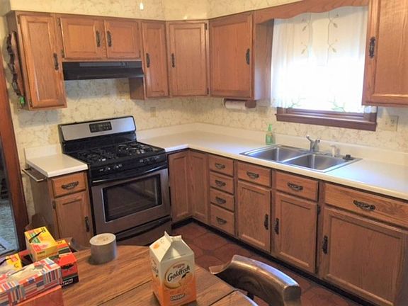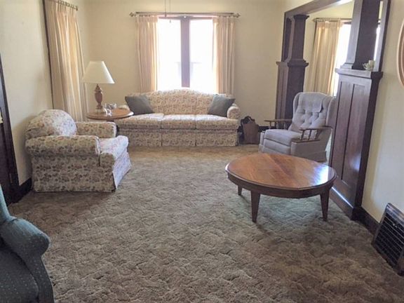 Very well maintained bungalow in great location on Lafayette St Entrance: glassed in front porch gives passive solar heat in the winter, carpet floor, white walls. LR: nice large living room has painted walls, neutral carpet, dark woodwork with colonnades dividing Living room from dining room. Dining Room: continuous decor of living room, custom drapes, painted walls, crown molding Kitchen: maple cabinets, white counter top, newer black appliances, easy care maralite walls Bedroom: paneled walls, closet Bedroom: paneled walls, closet. Bath: maralite walls, gold fixtures, vanity sink, extra storage Basement: Dry basement has paneled walls, kitchen cabinets and several separate areas for storage or game room. Included are freezer, sink, old stove separate heater for basement HE GFA and newer CAC. HE gas water heater. Back yard has ramp entrance. Also a very large 2 car garage with cement drive. Close to schools and in a quiet neighborhood. code 240 08232017 Re tax $127.08 (3 exemptions)