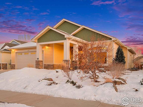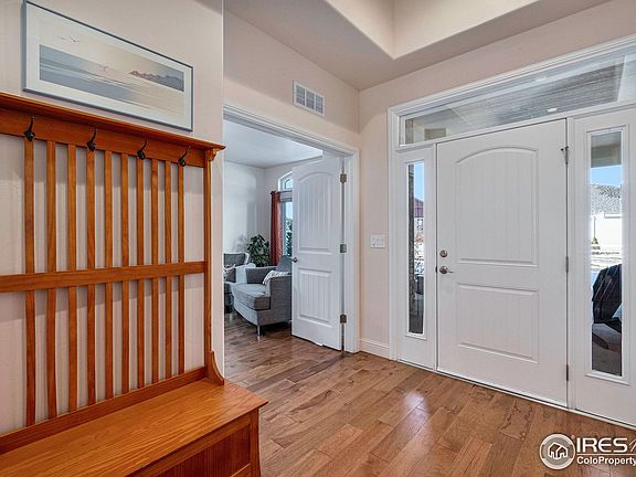 This stunning ranch home is a unique find in the desirable Registry Ridge neighborhood in south Fort Collins. An open spacious floor plan creates a seamless feel throughout and is punctuated by abundant natural light. The hickory floors and cabinets blend attractively with the stainless appliances and granite countertops. With a corner pantry, induction stove and ample cabinet space, this kitchen is sure to impress. A large island allows for seating and in-kitchen dining as well as a great space for entertaining family and friends. The beautiful stone fireplace caps off the living room and provides a warm and inviting ambiance. Wide hallways and doorways create a roomy feel everywhere you go. Large bedrooms and bathrooms throughout this home make for an elegant living experience. Curbless showers allow for easier accessibility and cleaning. The luxurious primary suite has generous bedroom space followed by a sizable bathroom with beautiful finishes and large walk-in closet. There are various work from home options and plentiful space for a workout area, play area, an entertainment zone, a small shop or storage. A lot of love and care has been put into maintaining this home which is evident upon entering. Outside you will find a xeriscaped yard backing to a walking path leading to Registry Ridge Park only two houses away. The back patio is a great place to relax after a long day. There is plenty of space for a grill and a great outdoor living set up. The Solar PV system was installed in 2019 and is owned. The new owner will get to reap the benefits of substantial energy cost savings without the expense of installing or leasing a system. The Enclave at Registry Ridge is a quiet neighborhood with access to local parks and recreation in several nearby natural areas. There are neighborhood garden boxes and events for the community to enjoy. Conveniently located 16 minutes to Old Town Fort Collins and 16 minutes to downtown Loveland. Come and experience it for yourself!