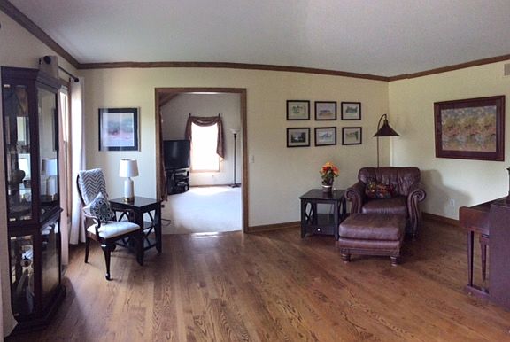 This quality built custom home in Glacier Ridge is in a quiet residential setting and convenient to schools and shopping. Open the door to beautiful hardwood flooring in both the formal living and dining rooms. The huge family room boasts a beamed cathedral ceiling, floor to ceiling brick fireplace with wood-burning insert, and front and rear bay windows with views of this private acre lot. The kitchen is equipped with new stainless appliances, a double oven, island range top, Corian countertops, and breakfast room. Step out onto a two tier deck that overlooks the secluded tree-lined back yard. Laundry room includes a new energy efficient washer and dryer. The central vacuum system makes cleaning easy. Upstairs, the master suite includes large walk-in closet, and a bonus room for an office or nursery. The master bath has double sinks, a new walk-in ceramic shower with glass doors. Enjoy 1,100 sq ft in your full fnshd bsmnt for parties or just relaxing w/two zone heating, sump...