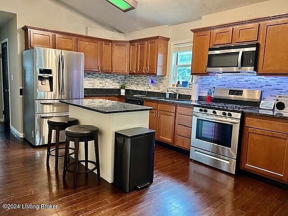 Inside Watterson near Audubon Park. Family room, dining area, and kitchen with soaring vaulted ceilings and hardwood flooring. Kitchen boasts granite countertops with separate island and modern tile backsplash The primary bedroom is spacious and includes a great 9 ft closet. Full bath includes a deep soaking tub and new modern blue sink vanity. Separate laundry room with convenient wall storage cabinets. The third bedroom is currently being used as an office. Home now has fresh paint and lvp flooring has replaced carpeting in bedrooms. Out front: a cozy covered front porch will greet you. Out back: a large, expanded back deck with huge 2 1/2 car detached garage. Park your car and have a perfect man-cave or she-shed hang out with durable yet snazzy epoxy coated floor. The backyard is fully fenced with unlimited party and entertainment potential: perfect for corn hole with fire pit area and 220v electric outlet ready for your hot tub. Call your friends now. It gets better: no need to stop the fun with the new electric panel with separate whole home generator port with generator included! Trane ac and furnace in 2019. This is a great property in an extremely convenient location. Don't miss this one! Real estate agent is related to Seller.