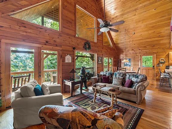 Check out this three bedroom, three bath true log cabin w/ a Short-Term Rental history! Embrace this gorgeous, true log as your private home or as an income producing STR property. This well-built cabin nestled in the My Mountain Community is less than 8 scenic miles from beautify and trendy, Blue Ridge, GA. Main level living contains the living room w/ gas log fireplace, dining room, & bedroom along w/ a full bath & additional storage. Upstairs, you will find the primary bedroom, full bath, Juliette balcony & views galore. All paved roads will escort you to your mountain retreat. Porches and balconies face the view & are ready for you to entertain family & friends in this relaxing community. Take your morning coffee on one of the outdoor areas & be on a first name basis w/ the local deer. A respectable long range mountain view is also an added perk of this lovely cabin! This property assures privacy by having one bedroom & one full bath on each level. The one car garage is found on the ground level & abundant driveway parking provides easy parking for several more vehicles. Some furnishings can be negotiated into the transaction as well.