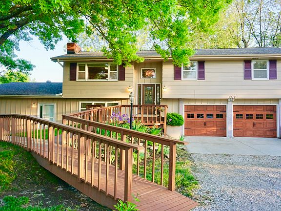 Rare opportunity in the desirable Berg Acres only one mile south of town, K-10 and close to entertainment, shopping, and restaurants! This move-in ready, 2347 sq ft, 4-bedroom, 4-bath house sits on a lovely one-acre lot on a quiet, safe, dead end street - perfect for children, grandchildren or pets. Friendly neighbors are always willing to lend a helping hand when needed and are great to chat with on a regular basis. The updated interior is great for entertaining friends and family with an open concept upstairs. Prepare food like a professional chef in a kitchen that boasts new porcelain wood look tiles, thick solid surface countertops, backsplash and stainless-steel appliances. Plenty of room upstairs for the family, home office, or hobbies with three bedrooms and two updated bathrooms. Downstairs, enjoy a third bathroom close to a large, two car garage, perfect for cleaning up after working or tinkering. Last, use the remainder of the ADA accessible, recently built (early 2010's) mother-in-law suite as an at-home business, Airbnb during KU games, rental, or a great place for parents, friends, or family to stay while visiting. With its own entrance, living room, fireplace, galley kitchen, large bedroom, massive bathroom containing Jack and Jill sinks, and a beautiful walk-in tile shower, this is truly a great space. Outside, unwind on the freshly stained decks that overlook your beautiful property, watching the sun go down on a warm summer night. Don't forget about the other perks including a Tuff Shed to store your lawn equipment, grape vines, small vegetable garden (we planted some things for you!), beautiful shade trees, wood burning fire pit and impressive landscaping. Free Home Warranty on this property is included. Act quickly and take advantage of your new home now, because it won't last long!