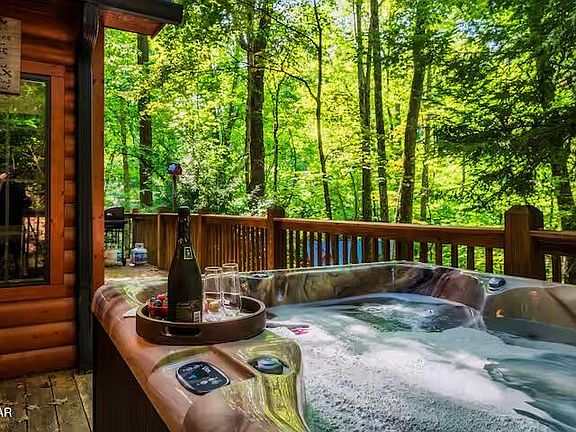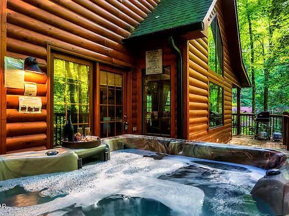 Outdoor living is a dream with a wraparound deck, a new hot tub, and latching gates to keep kids and pets safe. The cabin is part of an optional HOA that grants access to three clubhouses with pools and tennis courts.