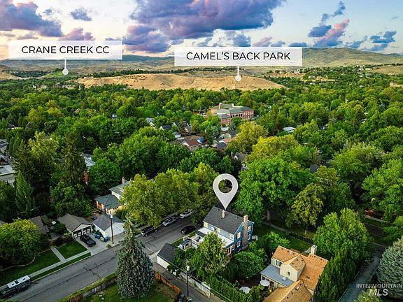 A piece of Boise history on a corner lot on the iconic Harrison Blvd! Colonial Revival architecture, proudly listed on the National Register of Historic Places. Featuring an exquisitely updated interior with original 1939 charm. Inside, stunning refinished hardwood floors span throughout, complemented by new Anderson wood windows. Renovated kitchen features ceiling-height cabinetry, granite countertops, and newer stainless steel appliances. Upstairs, you’ll find six true bedrooms each with walk-in closets, a rare luxury in the North End. Flexible layout with multiple living spaces. Outdoors, the charming grounds include an entertaining deck and a historic sandstone smokehouse turned wood-burning fireplace. Updated improvements such as plumbing, electrical, interior paint, sprinklers/landscaping, siding and roof are featured. Downstairs with separate entrance for ADU potential. Walking distance to Hyde Park, Camel's Back & Downtown Boise shops/restaurants.