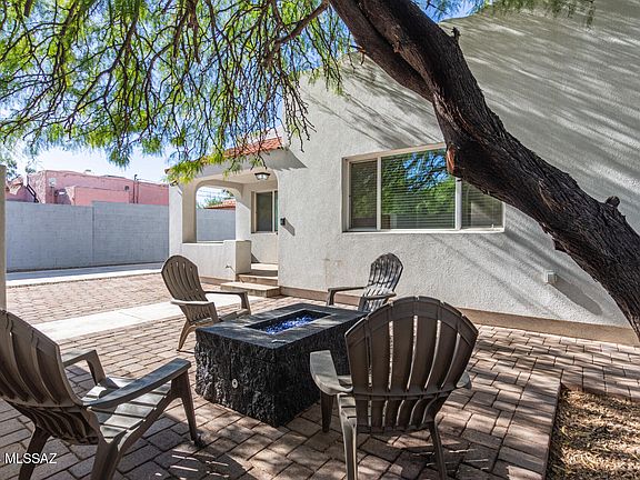 Seller will accept or counteroffer between $450K and $460k. Incredible LOCATION! Everything is NEW & Permitted. Walk to the UA!! Don't miss the chance to own this beautiful 2Bed 2Bath bungalow home in Tucson. It is situated on a desirable corner lot with a detached car garage and an RV gate/parking. This gem welcomes you through a cozy front patio complete with a fire pit. Inside, the living room, adorned with a charming fireplace, invites you to create lasting memories. A formal dining area awaits your gatherings, while the chic kitchen boasts stainless steel appliances, a tile backsplash, built-in cabinets, and granite counters. The main bedroom offers direct backyard access and a private bathroom. The large backyard, featuring a paver patio, is perfect for outdoor activities and more!