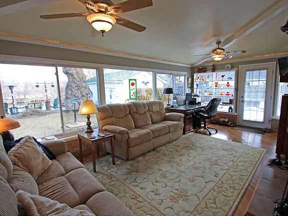 This beautiful Nippersink Creek Home is a boaters and fisherman's dream! Just a short boat ride to the Chain of Lakes. This wonderful three bedroom, two bath home has everything you need. Bring your boat, canoe, kayak and snowmobile and move right in. Dock your boat inside the hard to find boathouse. Sit out at the new patio by the creek and enjoy the great fishing or just sit back and watch the wildlife go by. The Nippersink Canoe Base is just a short paddle upstream with your kayak or canoe. and there are miles of snowmobiling down the creek on the Chain for your winter fun! The spacious sun-room with full view of the water will have you enjoying the wildlife right in your yard. Moving easily between the sun room, living room, and dining area allows for relaxed entertaining with friends and family. See-through wood-burning fireplace connecting the sun room and living room will keep you cozy on those winter evenings. Updated kitchen and appliances for all your cooking needs. Spacious bedrooms with carpet and lots of closet storage space. Don't worry about your feet getting cold in the winter, both bathrooms have heated tile floors! Need more storage space? There are two additional walk in closets plus attic storage with pull-down stairs. Single car garage with large workshop. There is also a garden shed out in the beautiful fenced lawn and gardens. Additional lot across the street. Brand new septic in 2014. recent improvements also include metal roofs and gutters, electronic services, double pane tilt-in windows, 2-sided fireplace with gas starter, hardwood floors, kitchen, baths and more. This gem won't last long, so call today!