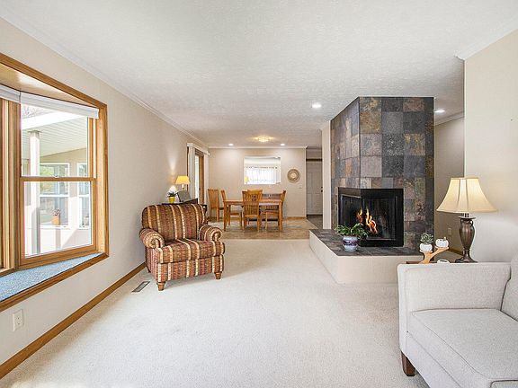 Welcome to this exceptional single-story home on Kalamazoo's west side! Lovingly maintained and beautifully updated, this home boasts a spacious 3-season room overlooking the serene backyard, complete with in-ground sprinklers and scenic wooded views. Inside, the kitchen, dining area, and inviting living room with a wood-burning fireplace flow together seamlessly. You'll love the primary bedroom suite with its tastefully updated private bath. The lower level offers additional finished living space and a cozy wood-burning stove. Enjoy peace of mind with a new roof, siding, and windows—all updated within the last 5-10 years. With three full bathrooms and abundant charm, this home is a rare find!