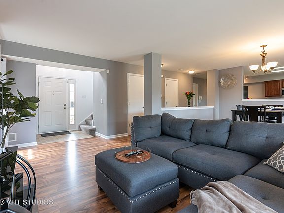 Move-in ready duplex with 2 bedrooms, 1 1/2 bathroom and a loft. Beautiful wood laminate flooring in the family room/dining room area. Stainless Steel appliances, granite counters and upgraded cherry cabinets with raised panels and cathedral tops in the kitchen make this a cooks dream! The upstairs has brand new carpet in the 2 bedrooms and loft area. The solar tube in the shared master bath adds plenty of light to the bathroom! Outside you have a 14'x20' stamped concrete patio and a fenced yard for added privacy! Enjoy all that Cambridge Lakes has to offer... community pool, recreation building, fitness center, tennis courts, skate park, baseball and softball fields, stocked ponds, parks and more! Hurry - this one won't last!