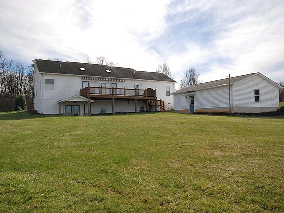 Country setting at it's best surrounded by mountain view! One level living home sits on 4.46 acres with a 3 car garage, whole house generator (3yr), living rooms with vaulted ceiling and skylights, master bedroom with two walk-in closets and large bath, eat-in kitchen and separate dinning room, unfinished basement, paved driveway. Large back deck with awning looks out at the mountain views.