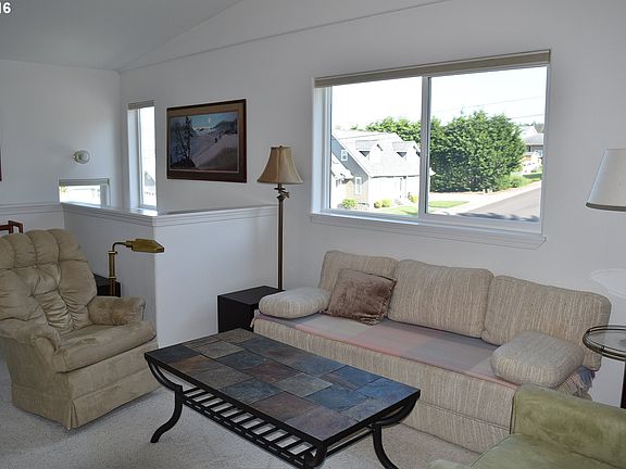 Charming & immaculate condo within easy walking distance to Harris Beach. Open and sunlit great room w/high ceilings & lovely windows. Kitchen & dining area w/laminate flooring. Built-in cook top & oven.Dishwasher. Garden window.Ocean peak from master bedroom w/walk-in closet & its own bath. Downstairs guest bedroom also has a view to the ocean. Nice entry & finished two car garage. All meticulously maintained. A sweet beach retreat!