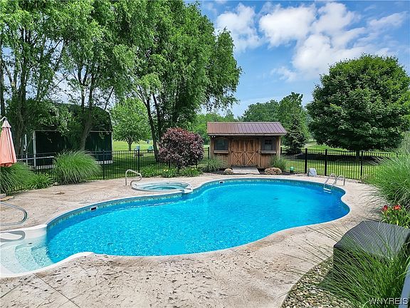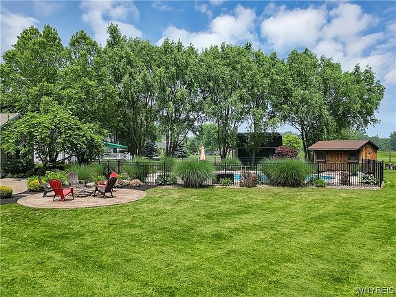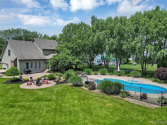 CAPTIVATING CUSTOM BUILT TUCKER COLONIAL w/STONE ACCENT NESTLED ON JUST OVER AN ACRE WITH PATIO, FIRE PIT, FENCED IN BUILT-IN HEATED MAJESTIC POOL 2017, BACKING UP TO THE GOLF COARSE AT THE BUFFALO TOURNAMENT CLUB! WHAT MORE CAN YOU ASK FOR! Conveniently situated in the Town of Lancaster w/demand Clarence Schools, attractive side load 2.5 car Garage w/add'l extensive long driveway for plenty of parking, oversized shed can fit add'tl car & massive green space for privacy! Coming in at nearly 2900 sf, this stately 2 Story Grand Foyer leads to Office w/french doors & Living/Dining Room. Grand 9ft ceilings Boast EXPANSIVE KITCHEN /MORNING ROOM w/FLOOR TO CEILING WINDOWS, Incl/ALL APPLIANCES, PANTRY, CERAMIC FLOORS, RECESSED LIGHTING, 1st FLOOR LAUNDRY, PILLARED GREAT ROOM W/VAULTED CEILING & STONE GAS FIREPLACE! This 4 bed/ 2.5 bath features a Primary en-suite w/walk w/Soaring Trey Ceiling, walk/in closet w/3 generous size bedrooms. Finished Basement has kitchen & walk-out entry from garage & kitchen includes Utility, Storage & Secure Room which completes this package! Solid Mechanics & 'Rain Bird' Sprinkler System! Offers will be reviewed as they come in!