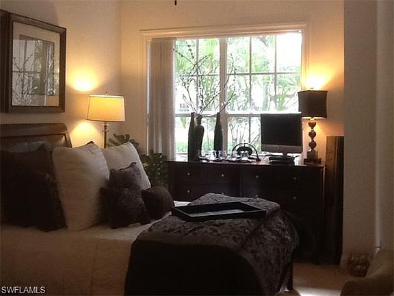Exceptionally well appointed coach home, ideally located in North Naples at Remington Reserve, minutes from the beach. This 2 bedroom, 2 bathroom home includes many upgraded design features including gourmet kitchen with wood cabinets, granite countertops, stainless steel appliances, breakfast bar, built in desk. Exceptional attention to details, crown molding, window casings throughout, tray ceilings, window treatments and porcelain tile in the main living area and bathrooms. Spacious master suite, with walk-in closet and private bathroom with his an hers separate vanities, wood cabinets, granite counter tops, walk-in shower and jetted tub. Enjoy beautiful sunsets on lanai which overlooks a tranquil natural preserve. Community amenities include a private Clubhouse with catering kitchen, outdoor grilling area, fitness center and business/media room. Clubhouse overlooks extended spacious paver deck and resort style heated pool and spa.