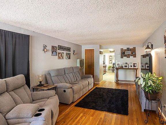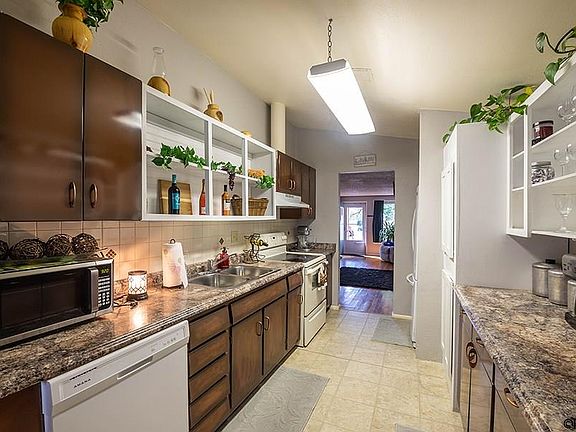 The location of this appealing rancher is the best -- centrally located not only right by a city park, but also within walking distance of the swimming pool & nearby schools. It has original hardwood floors, vaulted ceilings, & FOUR bedrooms (one with an adjacent room being used as its closet & for extra storage). Outside the house has mature trees, a fenced back yard with a shed and alley access, additional parking off the alley, a picture window flower box, two patios, & tasteful landscaped beds. There is even a small fenced garden spot for an herb garden. The kitchen offers updated appliances & unique metal-faced cupboard doors that give it a modern feel. Another notable feature is the deep shelved built-in storage space in the hallway. You will save $ with hot water heat. Other upgrades since 2013 = roof, boiler, electrical panel, heating unit in back bedroom; & evaporative cooler. The attached carport is enclosed on 3 sides. Come experience the best of 1950s charm with upgraded amenities that provide desired contemporary functionality. This is the house for you!