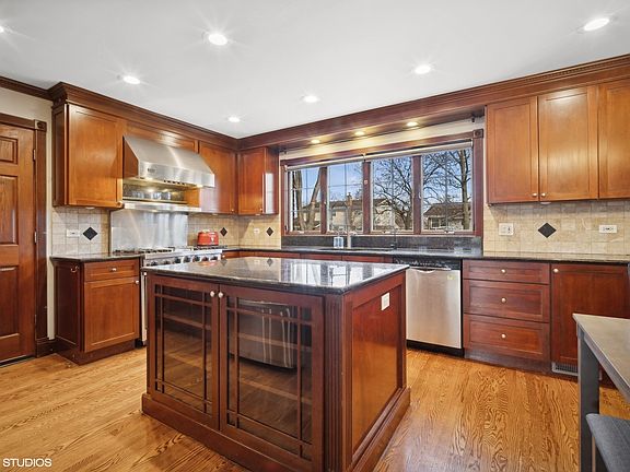Welcome to this stunning home, richly updated in the finest of taste. As you enter the home you are greeted by a large, light and welcoming foyer and open flowing floor plan. Beautiful hardwood flooring throughout, crown moldings, newer large windows letting lots of natural light flow, and a custom wrought iron banister from foyer to second floor are just a few of the features making this home so special. The first floor features a thoughtfully designed open concept gourmet kitchen with an abundance of custom cabinetry, center prep/breakfast island, high-end appliances and recessed lighting. The kitchen and its bright and sunny breakfast room opens to the family room and is accentuated by a floor-to-ceiling wood-burning fireplace with a brick surround. Formal dining and living rooms are perfect for entertaining. All four of the second floor bedrooms have large closets offering excellent storage. The primary ensuite features a tastefully designed bathroom with a double bowl vanity and shower. The large finished basement boasts newer carpeting and is perfect for a movie and game room, and offers excellent space for a home office. The basement also offers a huge storage room. The home sits on an interior maturely landscaped lot and features a large, fully fenced yard with two patios, perfect for a summer BBQ. It is close to wonderful downtown Arlington Hts and all that it has to offer. Close by are the Metra, restaurants, parks and close proximity to highways and schools.