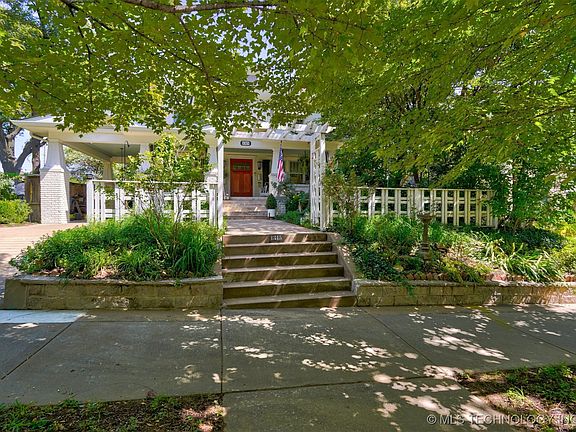 Some homes just have that “it” factor and this one does not disappoint! In fact, the current Sellers have purchased this home not once, but TWICE! Nestled on S. Guthrie Avenue, this 1935 American Foursquare home is full of character and charm, but this up & coming location is truly special as well. This home was featured on the Tulsa Foundation for Architecture Tour in April 2023. It is close to the Riverwalk and walking distance to the Gathering Place. You will enjoy seeing the bikers ride through this neighborhood during the Tulsa Tough Biking Race! You are also close to the Philbrook Museum. Walking up to the home, the inviting covered front porch with porch swing is very welcoming. As you enter the home it just keeps getting better! Original hardwood floors are in pristine condition and the main living area is filled with natural light. Everywhere you look is a treat for the eyes whether it’s the gorgeous, curved staircase, the detailed ceilings, the pretty curved brick fireplace, French doors or the wonderful, eclectic light fixtures! The updated kitchen boasts marble tile countertops, Scotsman ice maker, warming drawer, Liebherr refrigerator/freezer, and a Monogram gas range. There is a full basement complete with laundry, a bedroom, full bathroom, spacious main living space as well as a kitchenette! Upstairs you will find 3 bedrooms, a stackable washer/dryer, and a beautiful bathroom complete with a soaking tub, glass enclosed shower and a gorgeous double vanity. Just when you think you have seen it all, a special treat awaits you out back. A fully appointed guesthouse just beyond the pool is the perfect place for visiting friends and family. There is even a cute little potting shed! Check out the attached “highlights” list for more of the features that make this house an amazing place to call home!