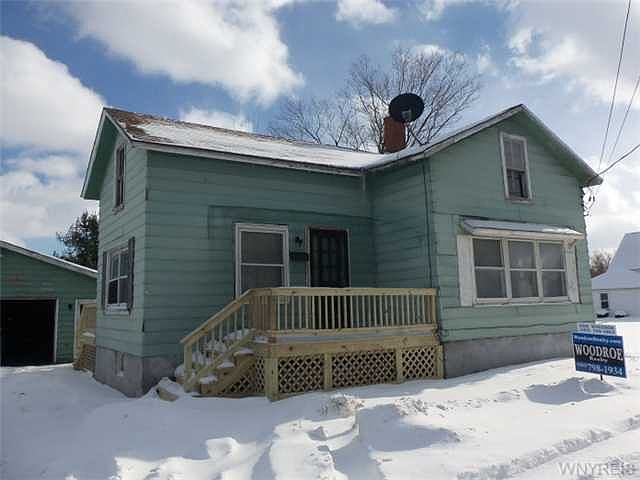 Take your income tax return and invest it. Why rent when you could own this home with only approx. $4,500 and good credit. This capecod is sitting on a huge lot backing up to Butts Park ball field. 174' of road frontage. The large lot to the north goes with the house. Beautiful new kitchen with skylight. Two new bathrooms. 1st floor laundry. New 200 amp electric service. South side of house has new roof. Two new porches. 2 car detached garage. Medina Saving & Loan will mortgage 100% if buyer has good credit and closing costs. Taxes do not reflect any tax discounts.