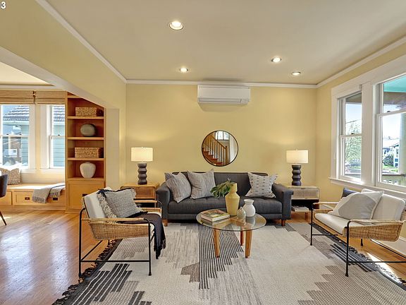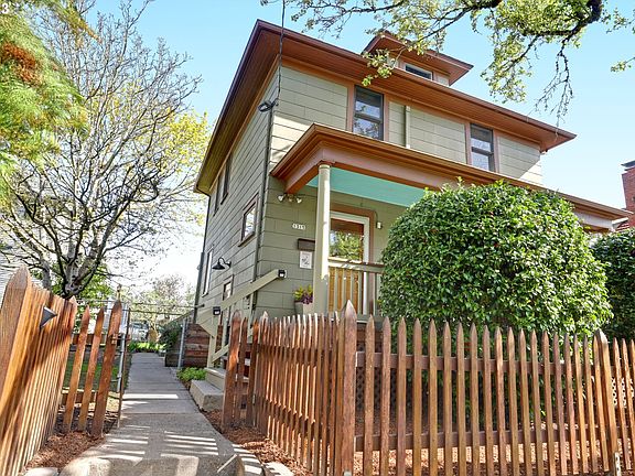 Beautiful, light-filled foursquare home on sunny corner lot! Gorgeous private, fenced yard with mature trees, raised garden beds, children's playhouse, and large storage shed. The backyard feels like an additional lot (more on that below). Quiet neighborhood street, yet blocks from Brooklyn Park, fun cafes, pubs and shops. Previous remodel spared no expense to blend desirable contemporary finishes with historic 1904 charm. Gorgeous custom built-ins, storage cabinets, seating, and bookshelves. Large, open-feeling kitchen was remodeled with top-shelf custom maple cabinetry, quartz countertops, and Fisher & Paykel refrigerator. All 3 levels of the home offer tall ceilings and many newer double-paned windows. Finished basement with private side access is great for guests or potential rental or ADU (buyer due diligence). This wonderful home is health and safety conscious and environmentally friendly. Earthquake retrofitted with gas-shut off valve. Whole home air cleaning system with HEPA filtration system provides filtered air to basement and main floor. Home Energy score of 9! Ductless mini-split heat pump system on main & second floors. Basement and second floor also have in-floor heating. The lot provides investment potential. Buyer to do their own due diligence, but Sellers have been told by BDS that this property is eligible for a Middle Housing Land Division, which could provide many options as detailed in following link: City of Portland Middle Housing Division: https://www.portland.gov/bds/zoning-land-use/land-use-review-fees-and-types/middle-housing-land-divisions --Walk/bike scores are 93/100. Four blocks to MAX for easy downtown access! Open May 2, 11 am - 1 pm. [Home Energy Score = 9. HES Report at https://rpt.greenbuildingregistry.com/hes/OR10213858]
