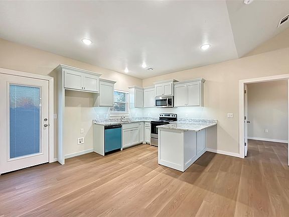 Step into this thoughtfully designed 2-bedroom, 2-bathroom bungalow home, perfect for first-time buyers, investors, or those looking to rightsize. From the inviting covered front porch to the light-filled interiors with vaulted ceilings and 9-foot walls throughout, this home offers both style and functionality. The modern kitchen is a showstopper, featuring granite countertops, ample cabinetry, a spacious breakfast bar, and all major appliances included refrigerator, range, dishwasher, and built-in microwave. The open-concept layout flows effortlessly, making entertaining a breeze. Relax in the serene primary suite with its tiled shower, dual-sink vanity, extra storage, and an oversized walk-in closet. The split floor plan ensures privacy, with the second bedroom located on the opposite side of the home, complete with its own walk-in closet. A second bath offers a tiled tub/shower combo and granite finishes. Practicality meets convenience with an included washer and dryer in the laundry area.This new construction offers fresh and affordable living in Chickasha that can't be beat! (Photos are of similar homes by the builder) 12+ month lease is preferred. Furnished and shorter term options are available. Tenant is responsible for the utilities and lawncare.