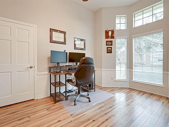 Fabulous West Houston/Katy home w stately curb appeal in sought-after Nottingham Country! Elegantly updated w high-end, modern finishes. Hardwood flrs. Large windows offering tons of natural light. 2-inch blinds. Home office (or Formal Living) off entry w French door. Spacious living w chic paneling, built-ins, TV hutch, poolside views & cozy brick fireplace w mantle. Formal dining w dry bar & kitchen access. Open kitchen w quartz counters, stainless steel appliances, attached breakfast area & a plethora of cabinet space. Laundry rm. Primary bedrm dwn w poolside views & ensuite offering modern aesthetic, double sinks, walk-in double shower & huge closet. Amply sized secondary bedrooms up. Loft-style Gameroom/Media Room/Flex space up. Backyard w sparking pool, decking & green space. Recent roof. Finished garage with sheetrock & epoxy flrs. Never flooded. Highly desirable school district! Great location! Easy access to 1-10, Grand Parkway, Highway 6 & Energy Corridor.